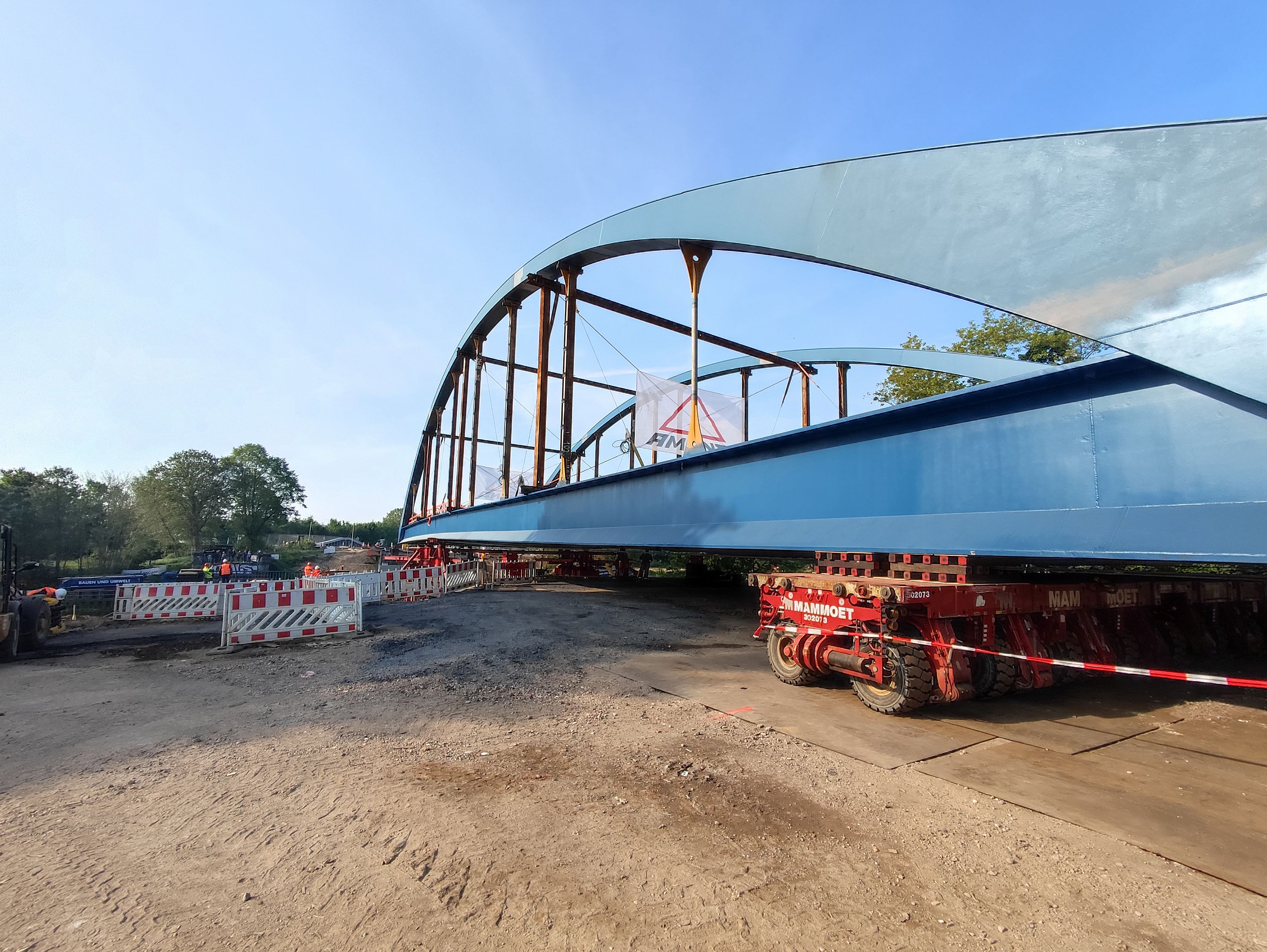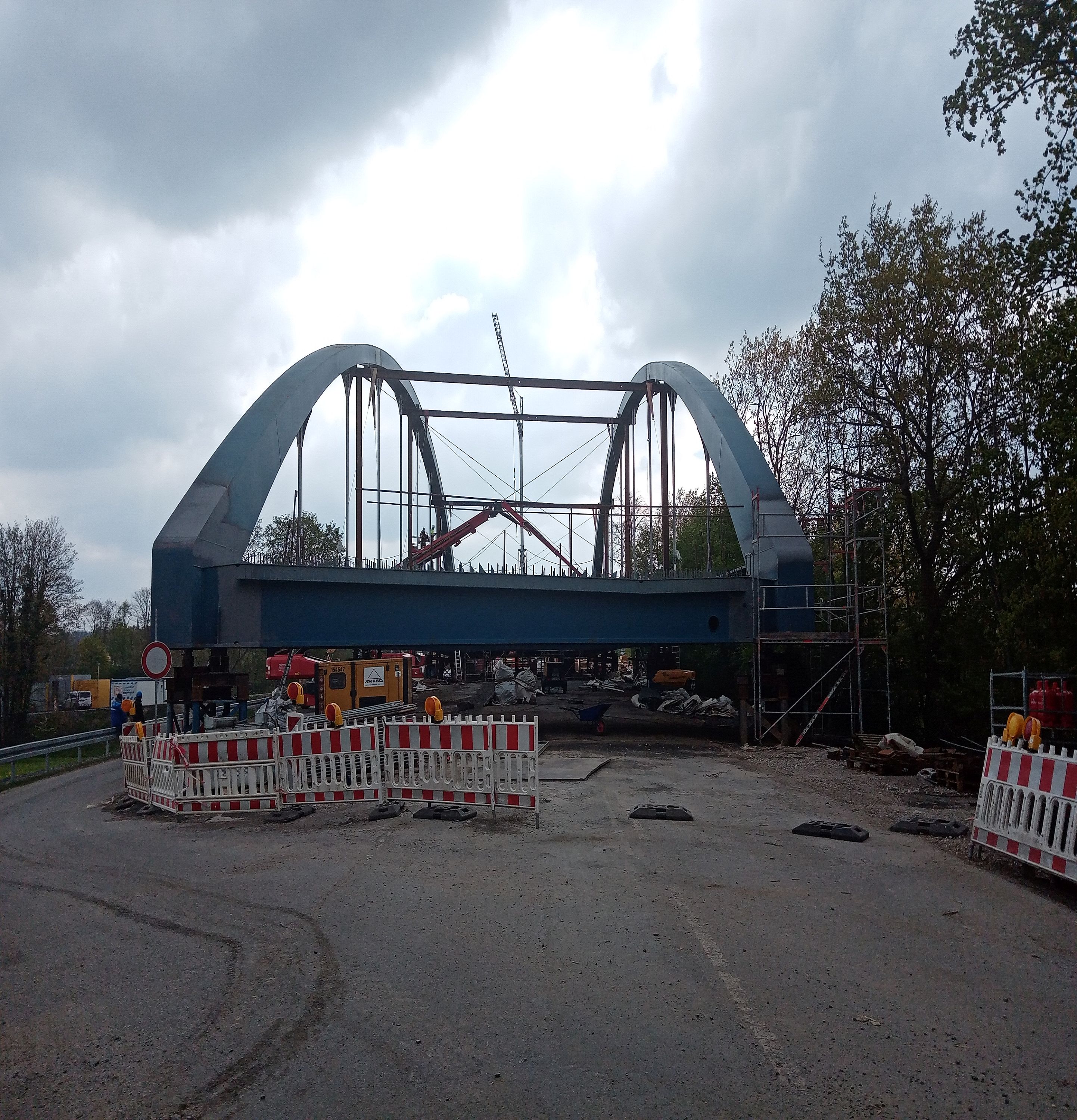 Zur Aufrechterhaltung des Verkehrs wurde eine Behelfsbrücke des Typs SS80 montiert und vorgehalten.