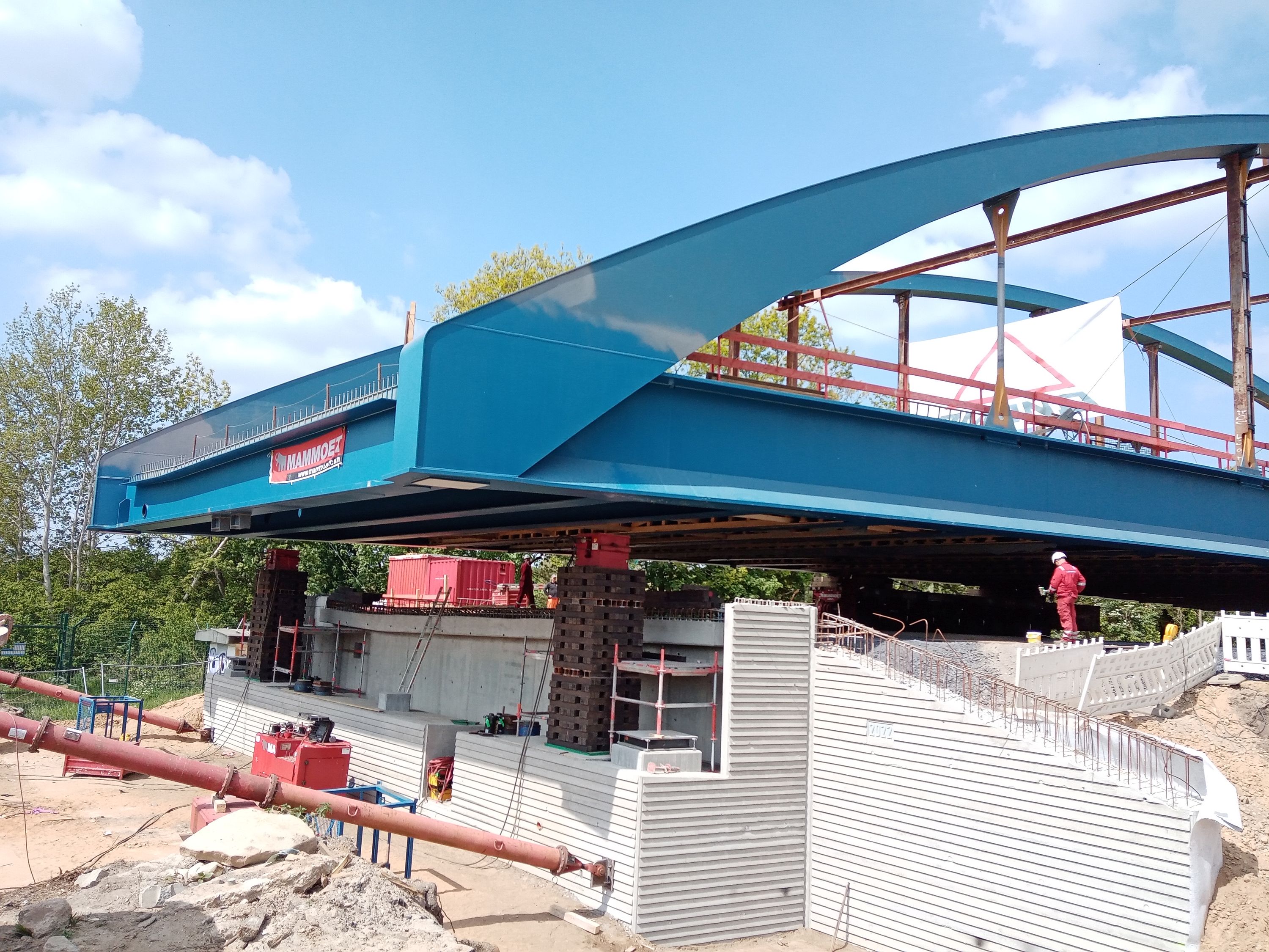 Die Bilder zeigen den Rückbau der Behelfsbrücke, sowie das Einschieben des neuen Überbaus.