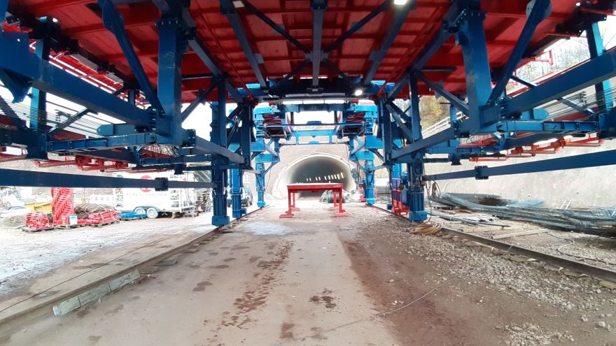 Tunnelbauwerk im Zuge der Verlängerung der A 44Stählerner Bewehrungs-, Magazin- und Nachbehandlungswagen